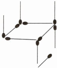 5. 下图所示的是一个倒放着且缺一条腿的椅子,请你移动2根火柴棒把椅子正过来。