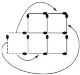 3. 下面是用火柴棒摆出的“品”字,共有3个小正方形。请移动其中的3根火柴棒,使它含有5个正方形。