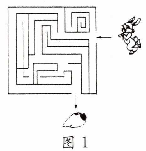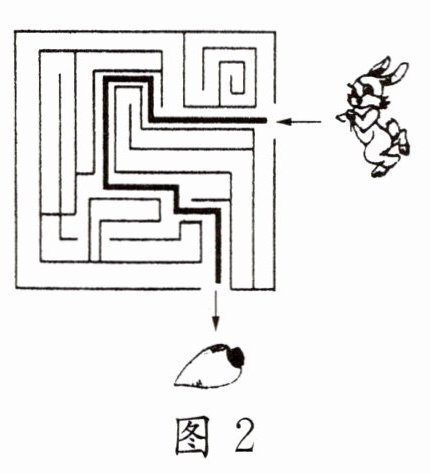 例2 在图1中小兔子该走什么路线才能很快吃到萝卜?请你帮小兔子把路线画出来。