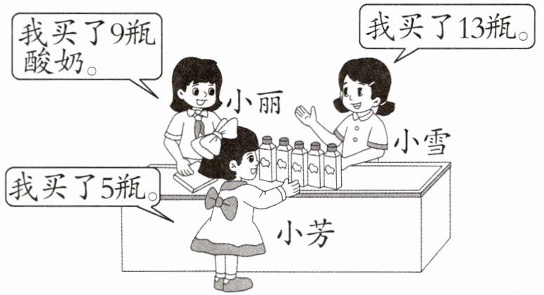 (1)小雪比小芳多买了几瓶? (2)小丽比小雪少买了几瓶?