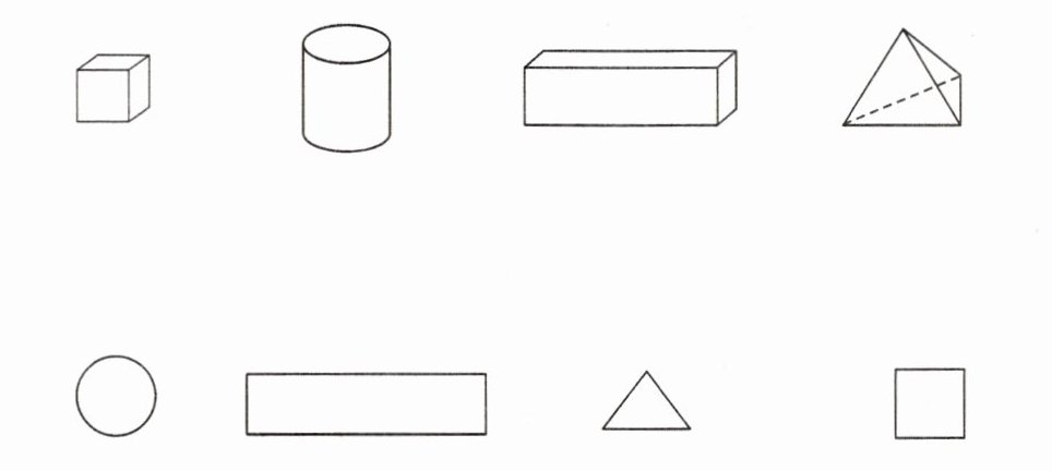 5. 用下面的立体图形可以画出哪些平面图形?连一连。