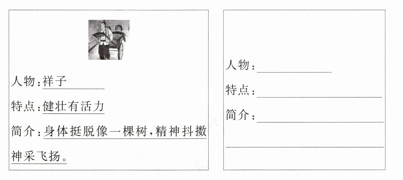 “字里行间众生相,大千世界你我他”,为了记录具有鲜明特点的人物,同学们为书中的几位人物设计了“人物名片”,请你仿照示例做一张“人物名片”。