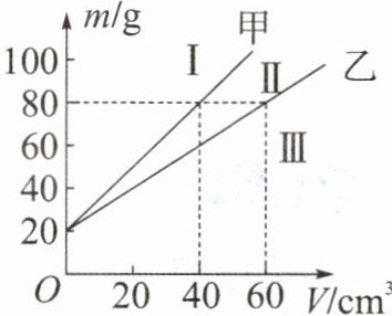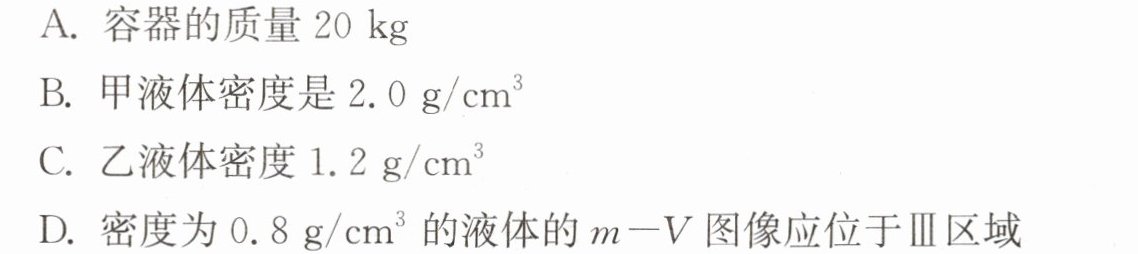 6. 小洋研究液体密度时,用两个完全相同的容器分别装入甲、乙两种液体,并绘制出总质量 m 与液体体积 V 的关系如图所示,由图像可知 ()