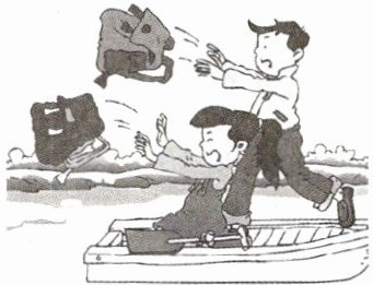 13. 小明的梦中经历:他和小华困在池塘中央的冰面上,冰面光滑。如图是他们的奇思妙想——把行李向后扔出去,船就前进了,船和人前进的施力物体是______。在小明的梦中,他们扔出行李后船将______(选填“慢慢停下来”或“做匀速直线运动”)。小明在教室里坐在凳子上模拟以上情景,发现将书包扔出,自己未曾移动分毫,此过程中小明受力______(选填“平衡”或“不平衡”)。