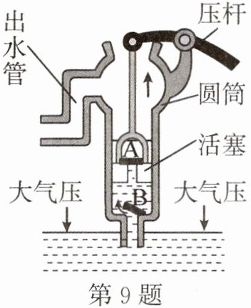 9. 如图所示是活塞式抽水机的工作原理图。关于活塞式抽水机,下列说法错误的是()