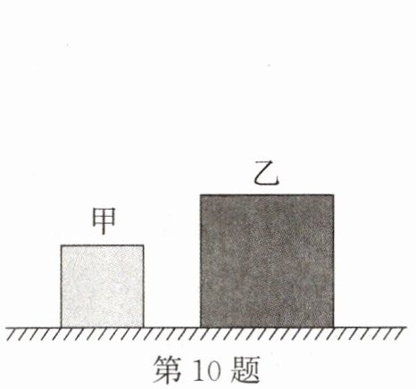 10. 如图所示,甲、乙两个实心均匀正方体静止在水平地面上,它们对地面的压强相等。若在两个正方体的上部,沿水平方向分别截去相同高度。则它们对地面压力的变化量 $ \Delta F_{甲} $、$ \Delta F_{乙} $的关系是()