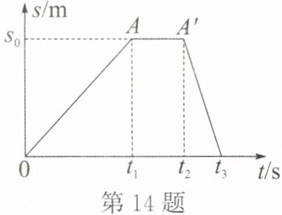 14. 如图是某物体运动的s-t图像,由图像可知该物体在______动能最大(选填$“0~t_1”,“t_1~t_2”,$或$“t_2~t_3”),0~t_1$时间内该物体速度______(选填“变大”“不变”或“变小”)。