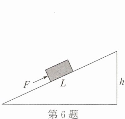 6. 如图所示,小高沿斜面用推力F把一重为600N的物体从斜面底部匀速推到顶部(不考虑物体的大小)。已知斜面长$L= 3m$,高$h= 1.5m$。若该过程中斜面的效率为60%,下列说法正确的是()
