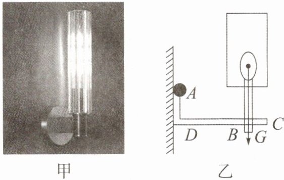 15. 如图是一种壁灯及其杠杆模型示意图。壁灯与支架总重力为G,壁灯与支架总重力的作用线恰好经过横杆上B点,DC垂直于AD。如图乙所示,若在安装壁灯时需要使壁灯绕A点逆时针缓慢转动,请在图乙中画出阻力臂$L_{2}和施加的最小动力F_{1}$的示意图。