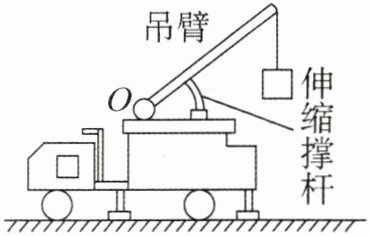 4. 如图所示为吊车从图示位置向上起吊货物的工作示意图,利用伸缩撑杆可使吊臂绕 $ O $ 点缓慢转动,伸缩撑杆为圆弧状,伸缩时伸缩撑杆对吊臂的支持力始终与吊臂垂直。下列说法正确的是 ()