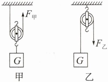 5. 如图所示,用甲、乙两种装置分别将重 $ 1 \mathrm { N } $ 的物体匀速提升相同的高度,滑轮重 $ 0.2 \mathrm { N } $。不计摩擦和绳重,所用的拉力分别是 $ F _ { \text { 甲 } } $ 和 $ F _ { \text { 乙 } } $,机械效率分别是 $ \eta _ { \text { 甲 } } $ 和 $ \eta _ { \text { 乙 } } $,则 ()