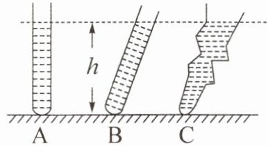12. 如图所示,$ A $、$ B $、$ C $ 三个容器中分别装有盐水、清水和酒精,三个容器中液面相平,容器底部受到液体的压强分别为 $ p _ { A } $、$ p _ { B } $、$ p _ { C } $,则 ()
