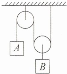 15. 把质量相等的 $ A $、$ B $ 两物体挂在如图所示的滑轮组下面,不计绳子、滑轮的重力和摩擦,放手后 ()
