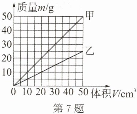 7. 在探究甲、乙两种物质的“质量跟体积关系”时所作出的图像如图所示。下列分析中正确的是 ()