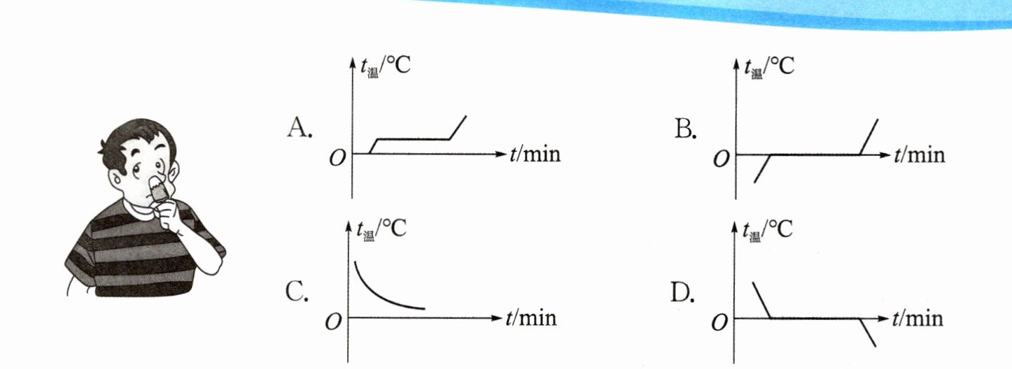 1. 某同学从冰箱冷冻室拿出冰棍贴紧在一块肉上,发现肉被“冻”在了冰棍上,此过程中肉上的水发生了某种物态变化,与其对应的图像是 ()