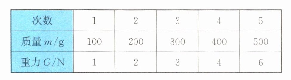 (2)第5次数据重力为6N,超出所使用的弹簧测力计的量程5N
