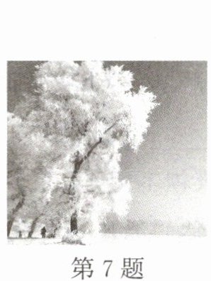 7. 雾凇,俗称“树挂”是非常难得的自然奇观,如图所示,它非冰非雪,是在严寒的季节里,空气中过于饱和的水蒸气遇冷______(填写物态变化的名称)而形成的。