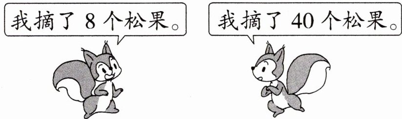 1. 松鼠兄弟要摘50个松果招待客人。它们摘的松果够吗?在$\square$里画“√”。
