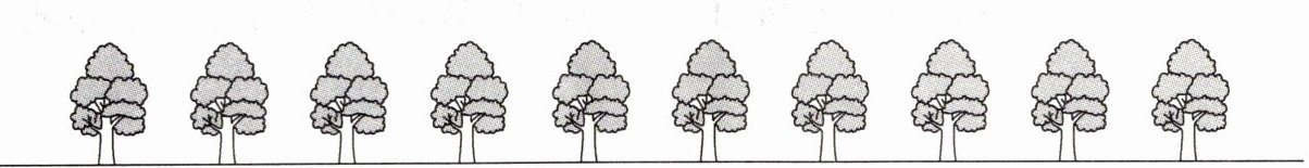 6. 一条路上种了10棵树,在相邻两棵树之间各安装一盏路灯,如下图,一共需要安装()盏路灯。