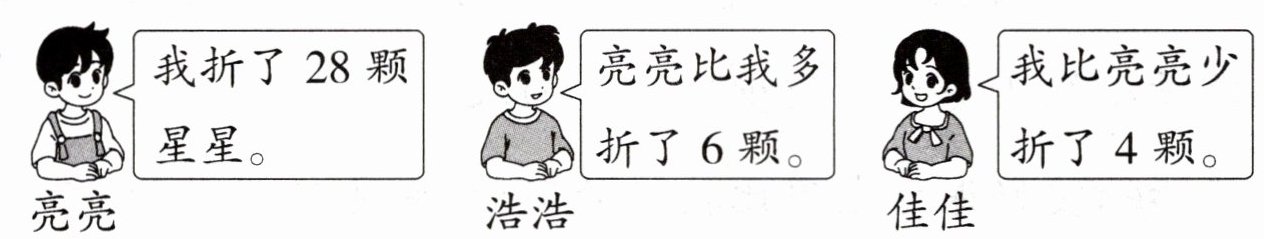 求“亮亮和佳佳一共折了多少颗星星”,要先求()。