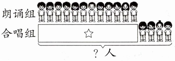 2. 朗诵组有 12 人,合唱组比朗诵组多 4 人,合唱组有多少人?下图中“☆”所在的长框表示的是()。