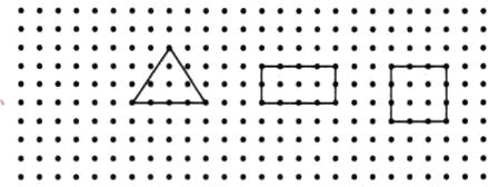 三、在下面的钉子板上围一个三角形、一个长方形和一个正方形。