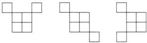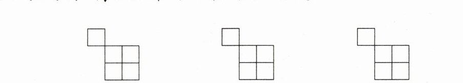 2. 如下图,在图中添加一个小正方形,使补画后的图形成为轴对称图形。画一画,试试你有几种不同的画法。