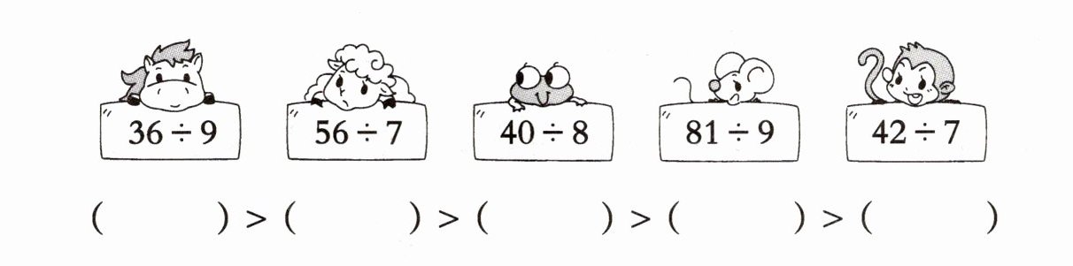 $81÷9$ $56÷7$ $42÷7$ $40÷8$ $36÷9$