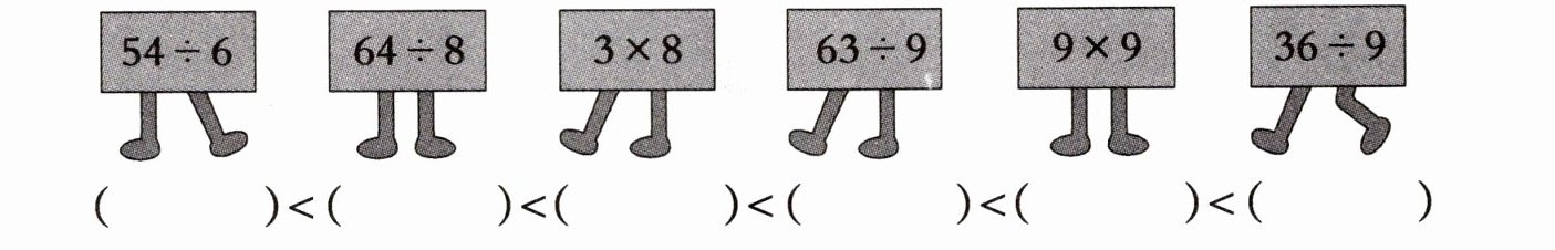 $36÷9<63÷9<64÷8<54÷6<3×8<9×9$