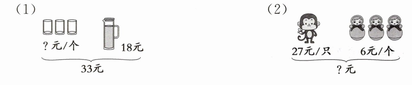 (1)$8×2=16$(元) $3×5=15$(元)