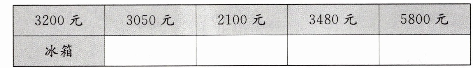3200 元 3050 元 2100 元 3480 元 5800 元 冰箱 洗衣机 电视机 空调