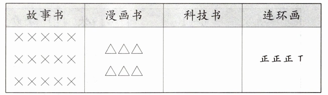六、下表是阳阳统计的全班 45 名同学最喜欢看的一种图书的情况。