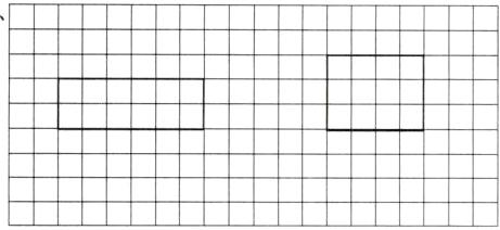 四、在方格纸上画出两个面积都是 12 平方厘米,但周长不同的图形。(每个方格边长都是 1 厘米)
