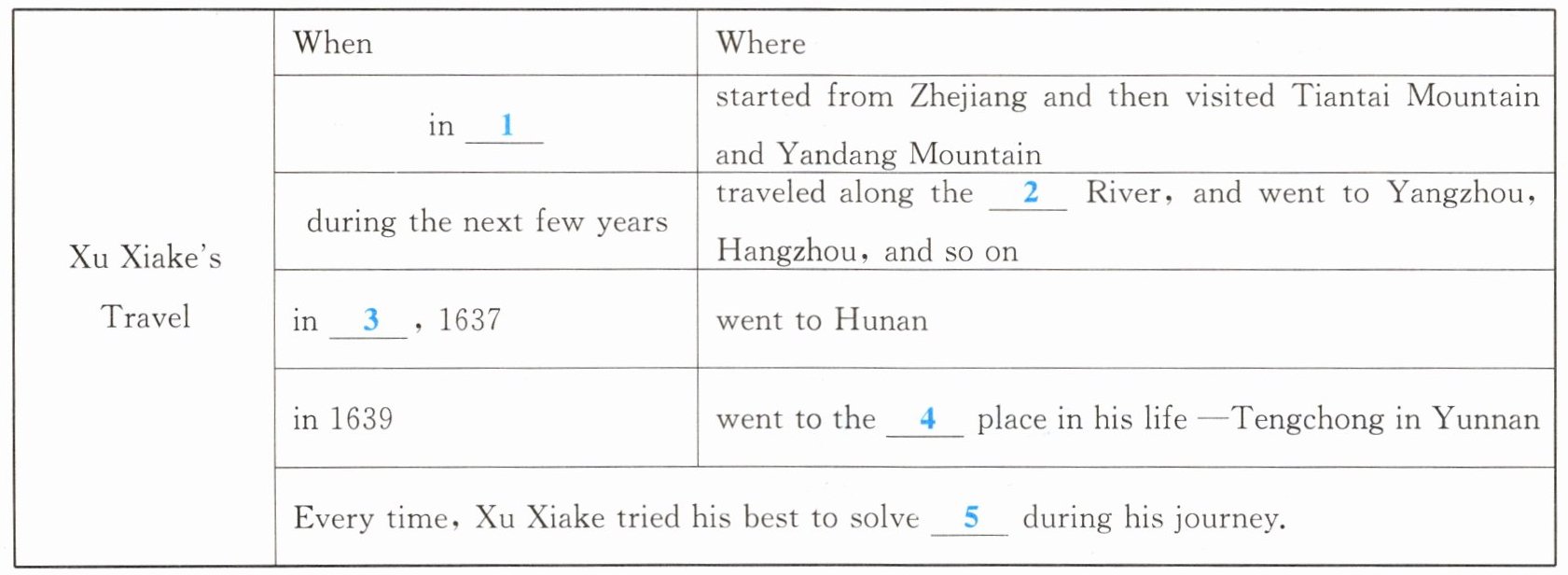 In January, 1637, he went to Hunan. He traveled south along the Xiangjiang River, and visited many places in the south of China like Guilin. In 1639, he got to the westernmost(最西边的) place in his life—Tengchong in Yunnan.