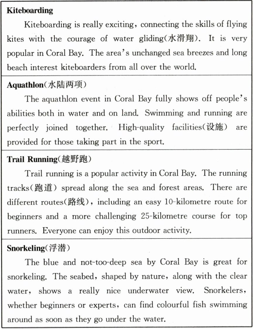 Coral Bay in Australia has a special natural environment that’s perfect for all kinds of sports. Every year it draws lots of sports fans from around the world.