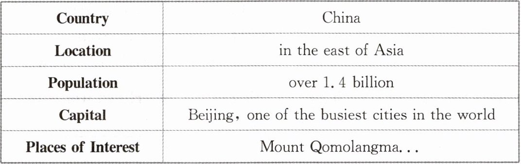 主体:就所给信息,详略得当地介绍中国 Located in the eastern part of Asia... Beijing...
