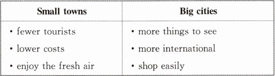 Firstly, there are fewer tourists in small towns. So it will never be too crowded. Secondly, travelling in small towns needs lower costs than travelling in big cities. I can use the same amount of money to visit more places. The most important thing is that I love nature. So when I visit the small towns, I can enjoy the fresh air which will make me feel comfortable.