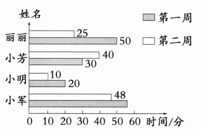 3. 四(1)班某小组成员在五月份第一周和第二周做家务时间如右下图。