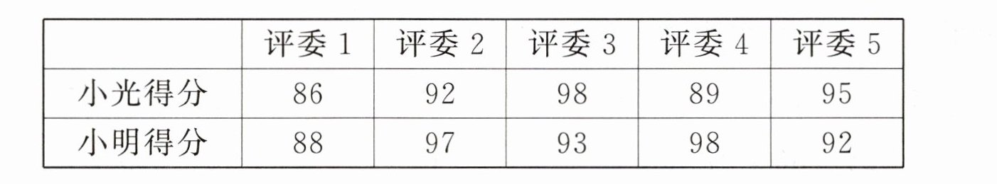 2. 在某朗诵比赛中,5 位评委给 2 位同学的打分情况如下表。(单位:分)
