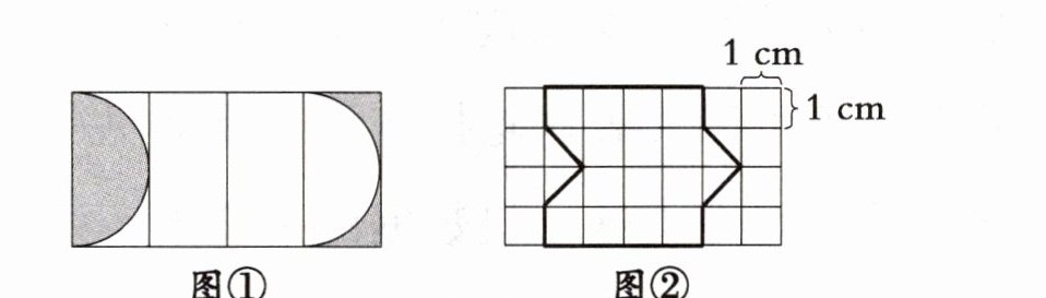 4. 下面两幅图是乐言为班级读书活动设计的徽标。图①中的涂色部分占整个图形的$\frac {()}{()}$,图②中图形的面积是()$cm^{2}$。