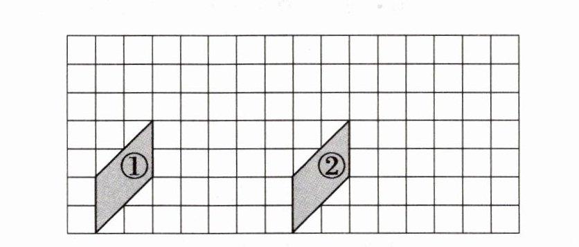 本题缺少对应参考答案,(1)需根据图形①是否沿某条直线对折后两部分完全重合判断是否为轴对称图形;(2)要根据图形①和②的位置关系确定平移方向和格数;(3)可通过数小正方形个数或分割图形等方法求面积;(4)多边形内角和公式为$(n - 2)\times180^{\circ}$($n$为边数),若图形①是四边形,内角和就是$360$度。