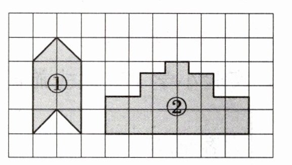 1. 如果图中每个小方格的面积为 $1 \mathrm{cm}^{2}$,那么图①的面积是()$\mathrm{cm}^{2}$;图②的周长是()$\mathrm{cm}$。