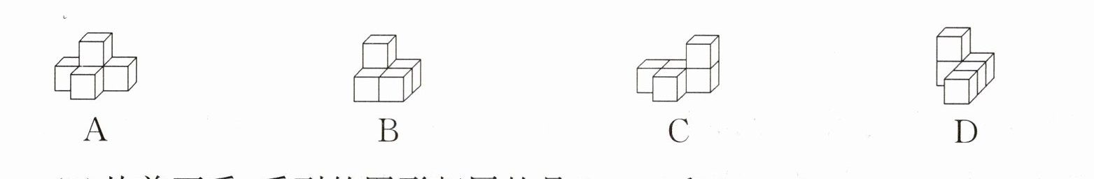 (1)从前面看,看到的图形相同的是()和()。