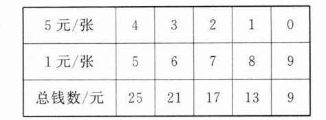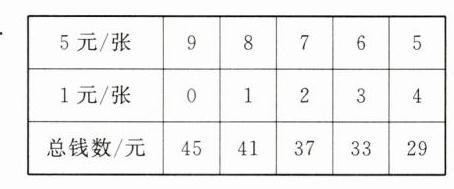 2. 小明有 $5$ 元和 $1$ 元的纸币共 $9$ 张,总共 $29$ 元。$5$ 元和 $1$ 元各有多少张?