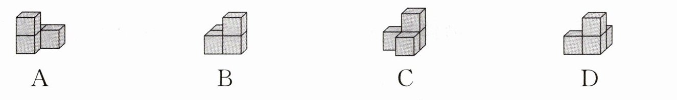 2. 在右面的组合体中添加一个正方体,使这个组合体从左面和前面看到的图形一样,一共有()种不同的摆法。