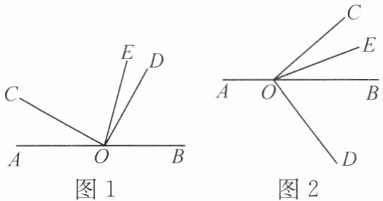 ②过点$O的一条射线OF$,使得$OC恰好平分∠BOF$,在图1和图2中分别探究$∠AOF与∠DOE$的度数之间的关系,请直接写出结论.