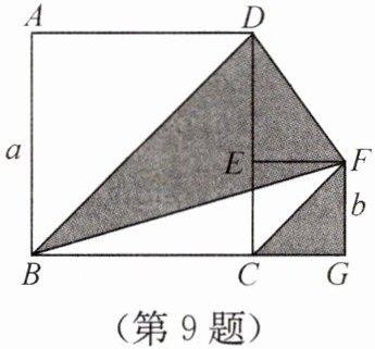 9. 如图,两个正方形的边长分别为 $a$ 和 $b$,如果 $a + b = 10$,$ab = 20$,那么阴影部分的面积是()