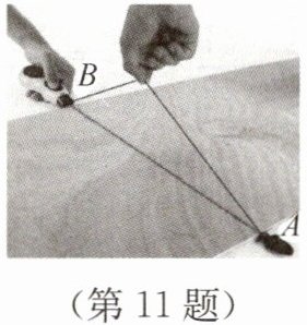 11. 如图,木匠师傅经过刨平的木板上的 A,B 两点,可以弹出一条笔直的墨线,请你解释这一实际应用的数学基本事实是.