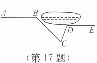 17. 如图,某煤气公司安装煤气管道,他们从点$A处铺设到点B$处时,由于有一个人工湖挡住了去路,需要改变方向经过点$C$,再拐到点$D$,然后沿与$AB平行的DE$方向继续铺设.已知$\angle ABC= 135^{\circ}$,$\angle BCD= 65^{\circ}$,则$\angle CDE= $______.