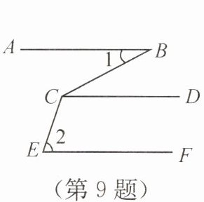 9. 如图,$AB// CD$,$CD// EF$,则$\angle BCE$等于()